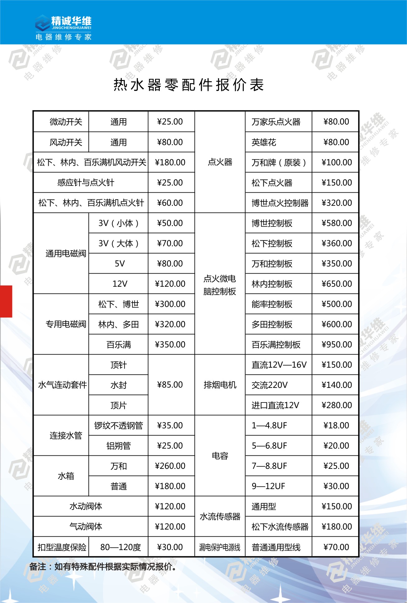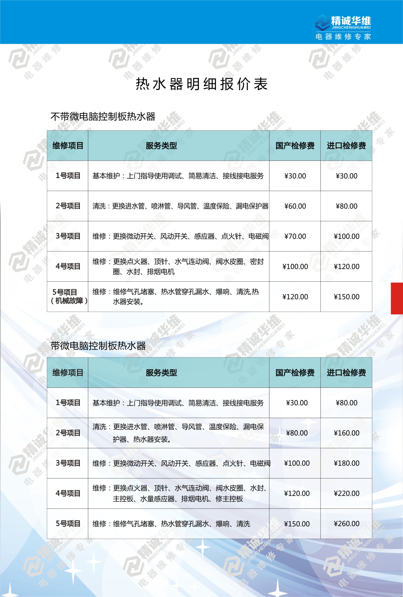 热水器维修报价