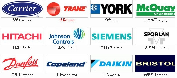 主要维保的品牌有:开利、约克、麦克维尔、特灵、大金、金光、格瑞德、日立、顿汉布什、武冷、捷丰等。
